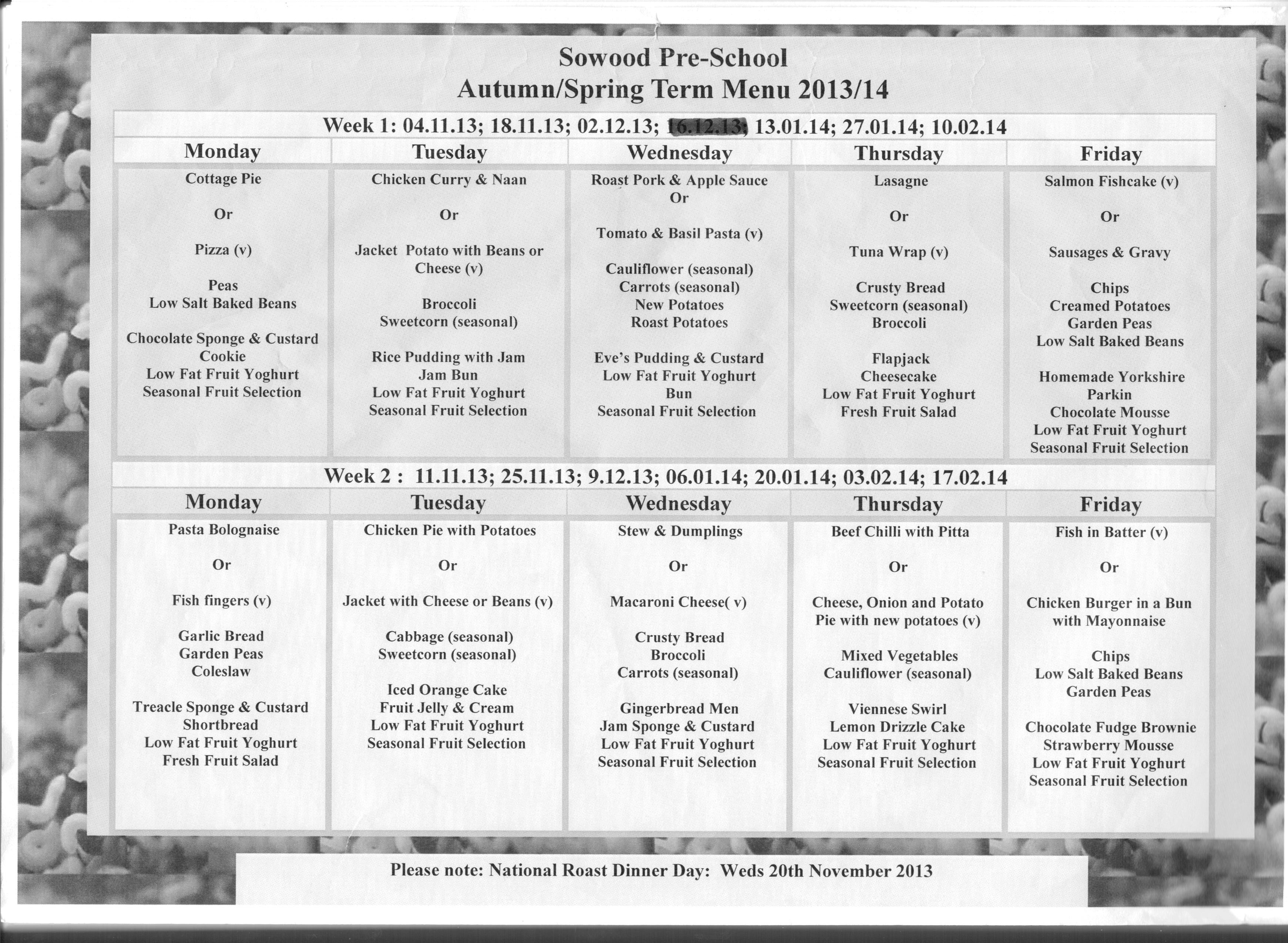 Autumn & Spring Term Menu 2013-14